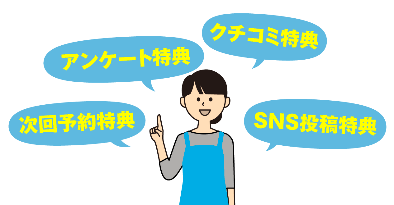SNSなどへの投稿をしたお礼として、また、お店のアンケートへの回答や次回来店予約の特典として炭酸泉メニューをプレゼントすることで来店促進につなげます。
